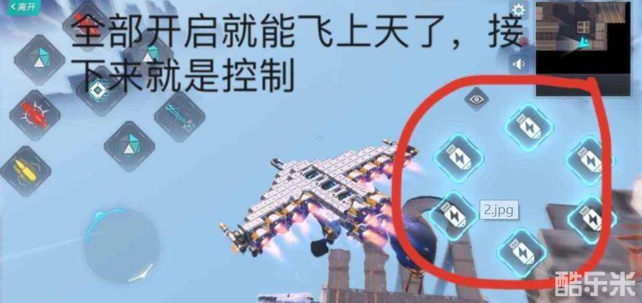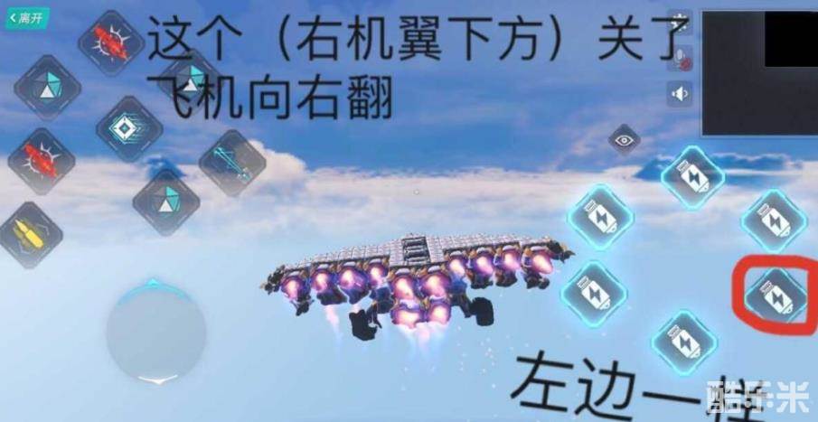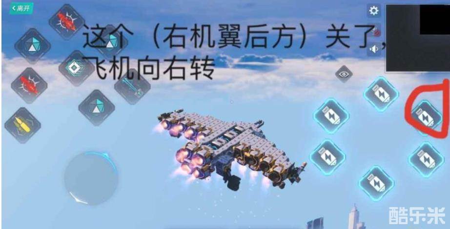 在飞机的操控界面,可以看到6个闪电图标的按钮,将其全部开启即可飞上天。想要进行上下左右转向,就需要对这6个闪电按钮进行逐一操作。比如,将右上方的按钮关闭即可实现向右转弯,而想要向左转就需要将左边的按钮关掉。
