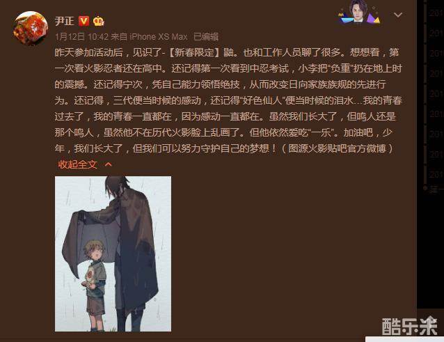 在活动结束后的第二天,难掩激动心情的尹正又发微博,回顾了自己作为火影迷的很多美好记忆。从这条情怀满满的微博不难看出,他对火影的确有着很深的情怀。尹正还表示自己和工作人员聊了很多,不知道这位火影手游资深铁粉,会不会带给策划更多被广大玩家心心念的灵感和创意?