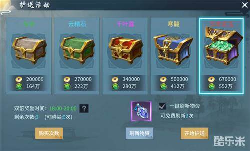 记得在双倍奖励时间(18:00--20:00)内进行物资运送哦,这样才能事半功倍,极大节约你修行的时间。
