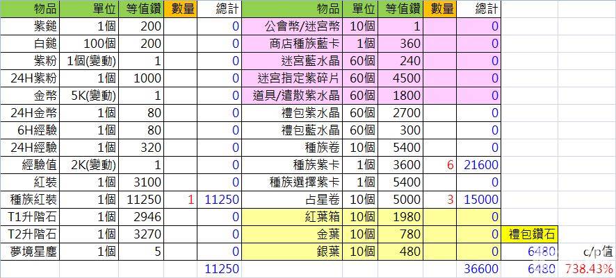 8. 种族装备的价差很大,有些礼包甚至换算下来是送的 (上表内的是活动兑换价)