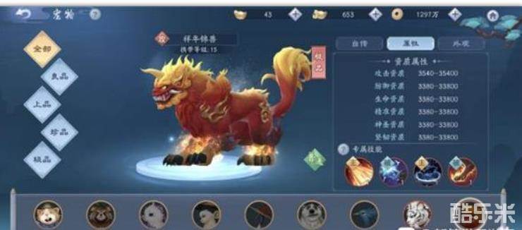年兽:新红色宠物,资质略高于老虎(低于125)技能暂无成长数据,目测略强于老虎!