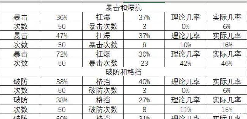 3)2)如果你的暴击破防百分比高于对面的抗暴格挡百分比25%以上,你的黄字比例会逐渐倾向于理论值(比如70暴击打40抗暴,实际中能打到30~35左右)