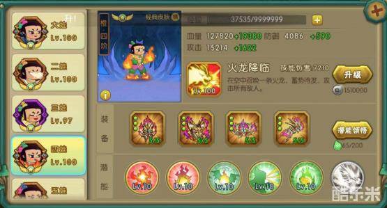 大娃:橙4,装备15/15,晶石9*6级+3*7级,塔5星7级灵