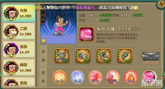 大娃:橙4,装备15/15,晶石9*6级+3*7级,塔5星7级灵(打法需要潜能已洗,潜六大量增加大娃三围以及技能伤害,利用潜六击杀蘑菇)
