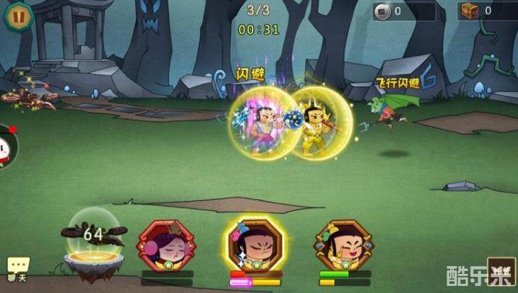 第三关进去也是三娃盾,小蝴蝶跳,开飞机,第三关小蝴蝶必死,死了也没关系,36在就行,36开飞机打死毒液蘑菇,飞机结束,普攻,剩下最后一只蝙蝠,36娃打死残血蝙蝠。两星过关!