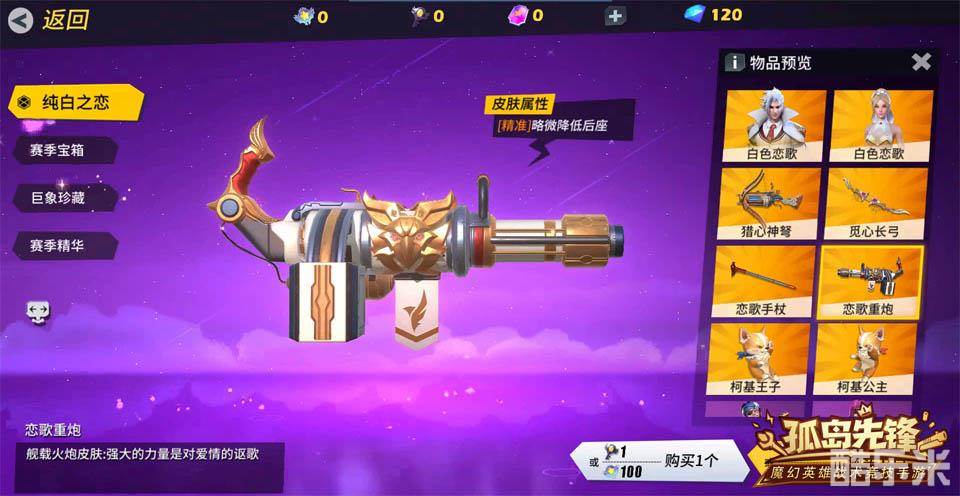 宝箱内藏有七海霸主专属武器皮肤,分别为“恋歌重炮”与“恋歌手杖”,火力超绝的重炮装点了白金双色纹饰,气质从霸气冷峻摇身一变为神圣庄严;而手杖的凤鸟雕刻也有鸾凤和鸣等浪漫寓意。