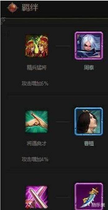 说明:所有羁绊组合需要在武将全部凑齐后方能产生羁绊效果。