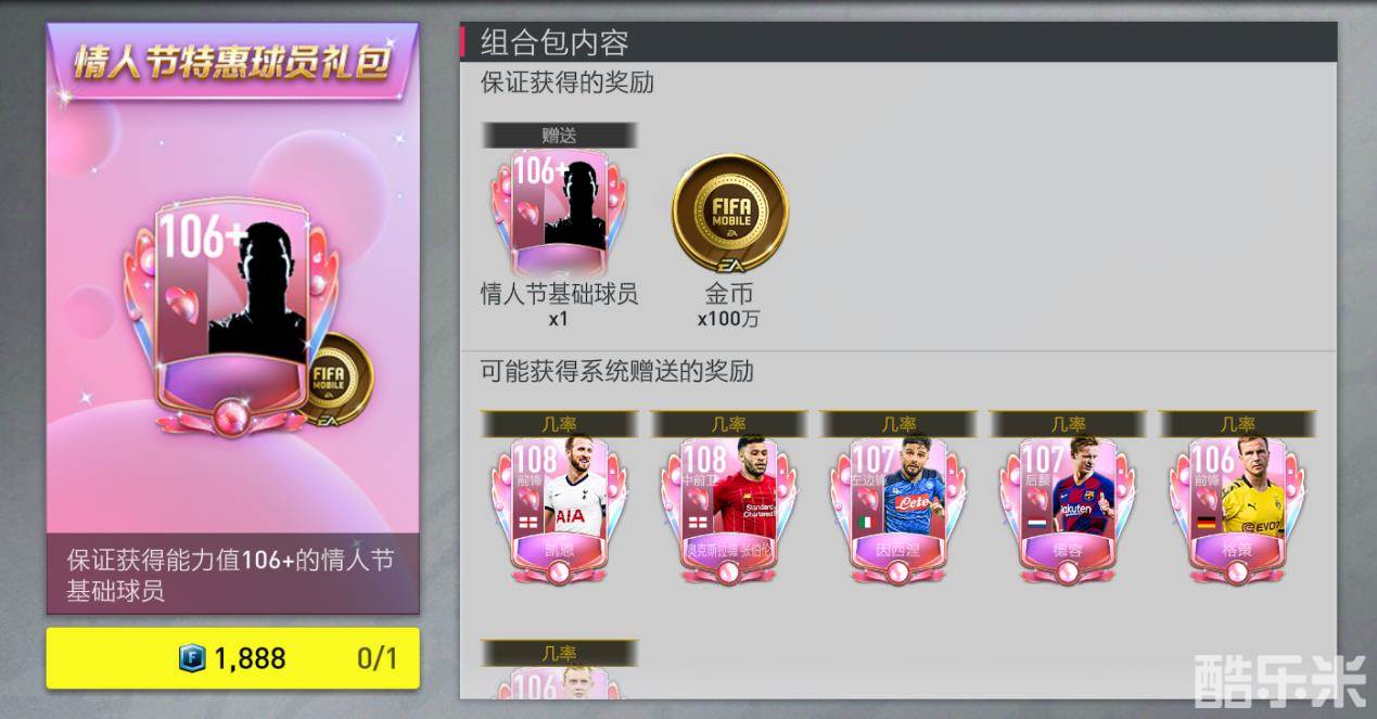 情人节特惠球员礼包:必得本次活动超强力106+球星!