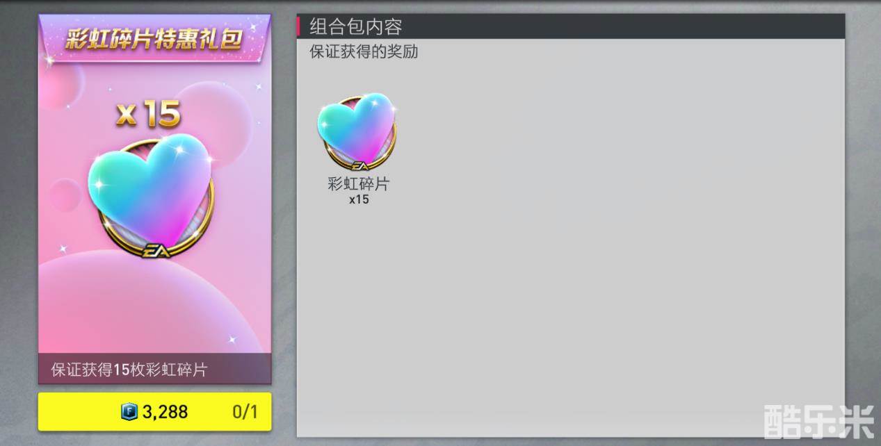 彩虹碎片礼包:包含15枚彩虹碎片。