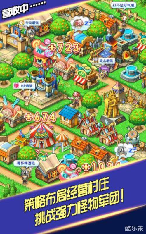 放置玩法是本作的一大特色!当你离线之后,这整个世界依然有序的在运作。所以合理的规划村内建筑位置是很重要的,勇者会光顾这些建筑,他们的消费就是村子的营收。有些建筑,如弓箭手训练场、盗贼训练场占地都很大,需要事先规划位置,免得村子太挤塞不下其他建筑了。有些建筑占地面积小,如图书馆、杂货铺可以塞挤在小片零碎的空地上,利用好空间,让建筑之间互相加成吸引更多勇者进入,就能收益最大化!