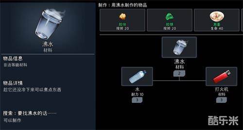 玩家需要准备沸水和冰块,如此即可制作和获取。注意,沸水通过水和打火机制作获得。