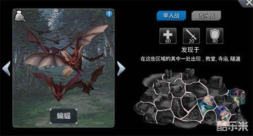 小伙伴们可以前往单人战地图的教堂、寺庙、隧道中找到蝙蝠。同时,该生物生命值为60点、攻击值20点、防御值40点,有着一定的挑战难度,可根据自身当前的生命值和需求选择性攻击。