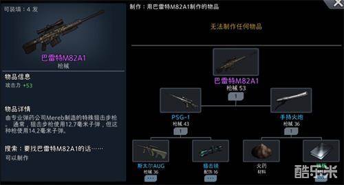 黑色幸存者巴雷特M82A1怎么得 需PSG1和手持火炮