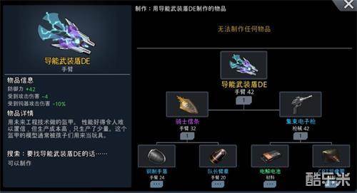 导能武装盾DE的配方是什么呢?即:玩家需要准备集束电子枪和骑士信条才能完成制作。