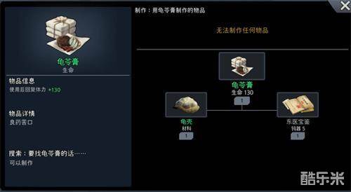 黑色幸存者龟芩膏的使用可以提供130点生命值,提升持有者的作战续航时间,降低被送出局的概率。那么,黑色幸存者龟芩膏怎么制作呢?龟芩膏的制作需要什么材料呢?不少小伙伴有这个疑问。为了揭开这个谜题,以下我们带来了龟芩膏的详细解读,快来看看吧。