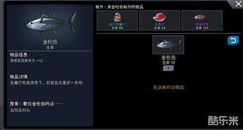 黑色幸存者烤金枪鱼是一类食用后可以回复体力的食物,有着极高的美食度,是不少玩家的烹制首选。并且,因为其卖相也十分不错,因而值得小伙伴们囤积和拥有。那么,黑色幸存者烤金枪鱼配方是什么?烤金枪鱼的制作需要什么材料呢,赶快来详细的了解一番吧。