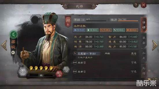 武将名:蒋琬【蒋琬】 统御5