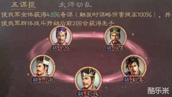 对敌群体混乱,解除友方混乱状态并增伤,自带战法高发动率且输出很高。全面且强力,下赛季将带领魏骑的崛起,引领混乱状态的风潮。