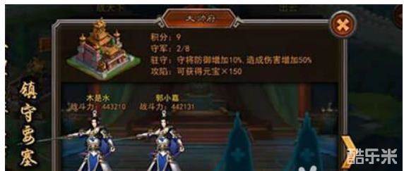 9、大帅府(3明4暗),打法同将军府。前面打通后,大帅府也就剩守将防御增加10%,造成伤害增加10%了,妥妥的拿150元宝吧。