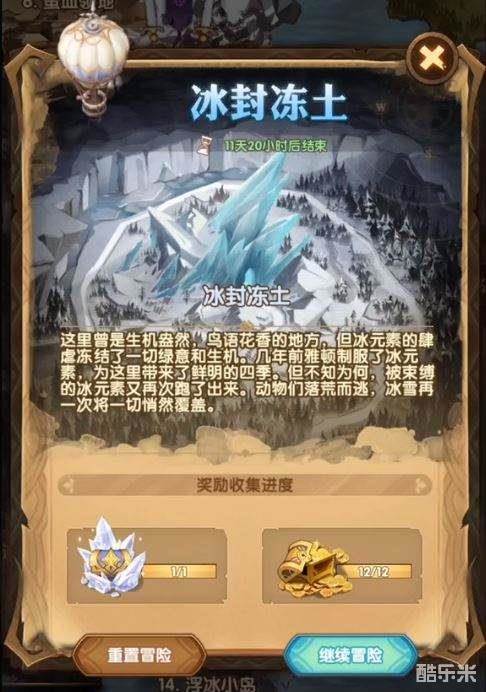 距离开始还没有几天时间了,开启后玩家在游戏中点击冰封冻土就可以开启冒险了,能否获得冰封冻土比较好的奖励就要看各位玩家啦,要看玩家能否顺利的过关。