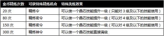 2、累积金币精炼次数,即可逐次获得3种特殊精炼机会;