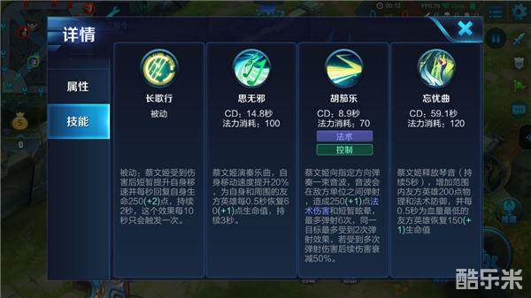 解析:蔡文姬受到伤害后会短暂提升自身移速和回复一定的生命,非常适合蔡文姬撤退用,配合装备可以达到最好的效果。