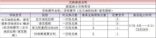 与卡池同步开启的还有威猛战士交换商店,能够直接兑换古拉迪欧拉斯和诺克提斯。