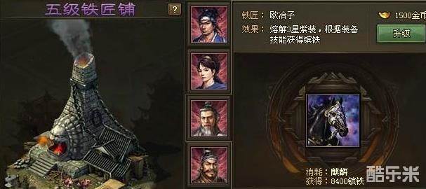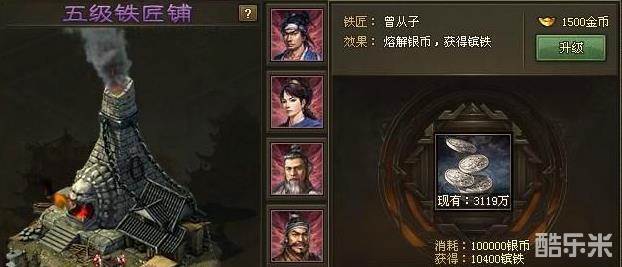 以上就是小编给大家带来的攻城掠地铁匠铺升级玩法的相关内容,希望对大家有所帮助,要想了解更多游戏资讯,游戏攻略,尽在酷乐米手游专区,酷乐米手游专区期待你的到来!