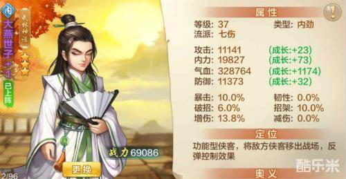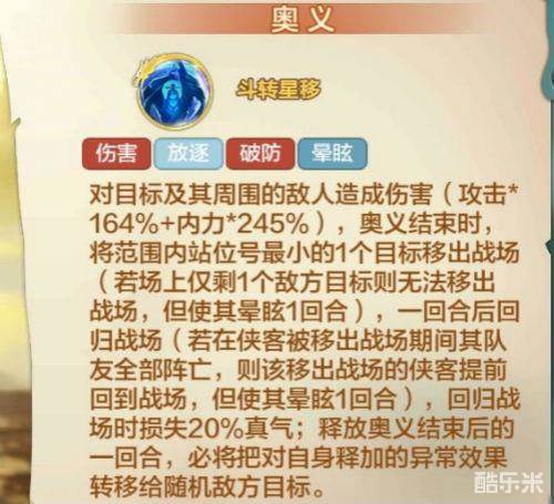 “大燕世子”拥有将对方武侠移出战场的奥义“斗转星移”,这项奥义可有效的针对敌方阵容,往往能在逆风局中起到决定性的作用。