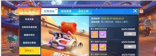 2.累计漂移55000米;完成即可获得金币*500、家园币*1000
