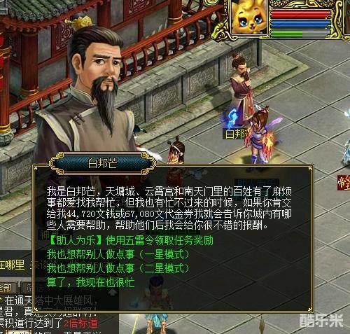 此外,还有不需要分等级段完成的师门任务、白邦芒任务、文曲星、地图挑战、帮派任务等,无论是经验还是代金券或者金钱的奖励都非常可观,并且随机元素众多,难度不高,单人就即可完成。五分钟就可以帮你快速提高数值,所以也属于玩家每天必做的活动之一。