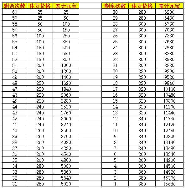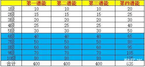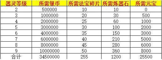 《葫芦娃》体力装备+潜能+器灵升级所需汇总表