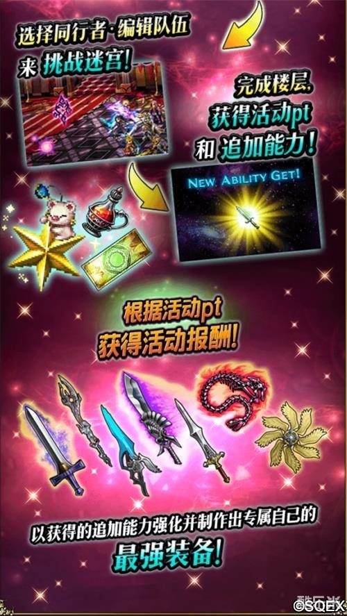 实地试验来了!FF13主题的活动迷宫将带大家前往遭受独裁国家加尔巴迪亚袭击的多尔公国,和拉斯韦尔以及FF13的主角斯考尔、莉诺雅一起进行冒险,赢取稀有召唤券、限定能力和装备。