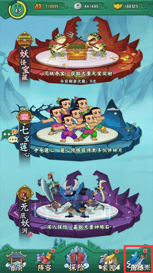 大家好,这里是酷乐米小编龙牧,相信很多玩家在刚接触到手游《葫芦娃》的时候对于如何获取葫芦娃碎片都不太熟悉,其实手游《葫芦娃》中的七宝莲心就是游戏内一个很良心的碎片获取系统,他可以通过让你的葫芦娃修炼而获的对应的碎片奖励,不会消耗任何东西哦。那么让我们来看下七宝莲心从哪里进入,其实入口就在历练中,大家可以通过来进入七宝莲心。