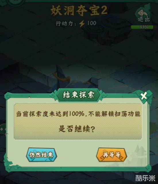 其次探索度达到100%才算完成探宝副本并解锁扫荡功能,那么问题来了,