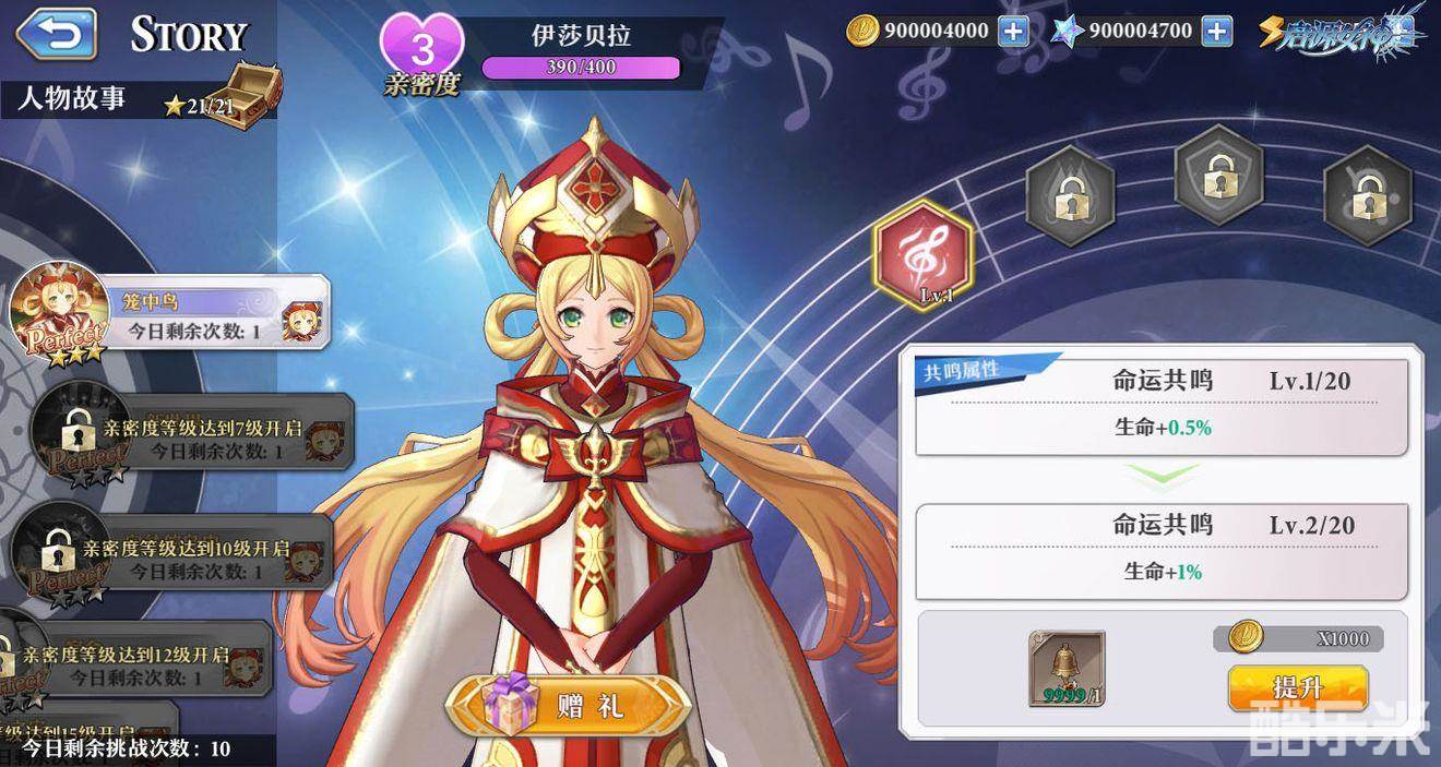 任务故事就是让你看到这个角色的专属故事,通关人物故事的副本还能得到英雄碎片和命运塔罗牌,而共鸣解锁这个玩法比较重要,可以让我们全方位的提升角色的攻击、防御、生命等,当然星钻也是有可能获得的。