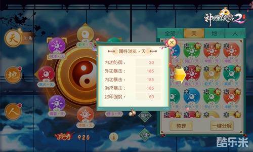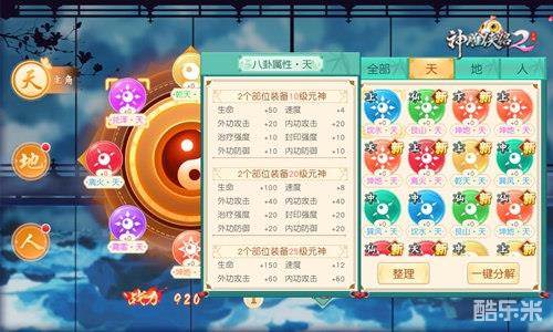 每个元神看似独立,却又有同品类之间特有的羁绊“八卦属性”。例如,当“天”中的2个部分装配元神同时达到10级,就能额外激活生命、攻击等多重属性。由此可见从长远角度来看,集中培养某几个关键元神,远比为了快速提升而分散着去培养多个元神收益更大。