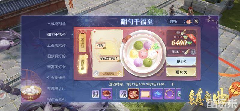 中州革新稳步推进,《镇魔曲》特别延期的元宵庆典“华灯引梦”也在进行中,还有最后一周时间,天命者们可以参与其中、收获海量奖励!每日挑战瑞兽、捞元宵、做元宵、召回战友等,皆可领取不同的好礼,装备、珍稀道具、坐骑、外观等应有尽有!还有多重返利回馈活动等着天命者们参与,超值大礼包、充值送豪礼等,你可以随心所欲参与其中,福利奖励带回家!