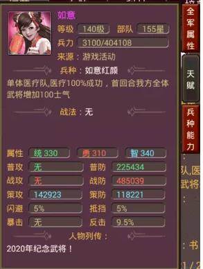 如意典韦伴你闯试炼今年的新年武将“如意”想必大家都已经拿到手了,可是很多小伙伴因为不确定这个武将的定位和实力,一直迟迟不敢传承怕起不到作用。“如意”,顾名思义,如意如意,万事如意;在试练中利用此将有迎“意”而解之势,配合战恶·典韦使用更是堪称不败,以下我以庐江试练为例向大家分享如何布阵。
