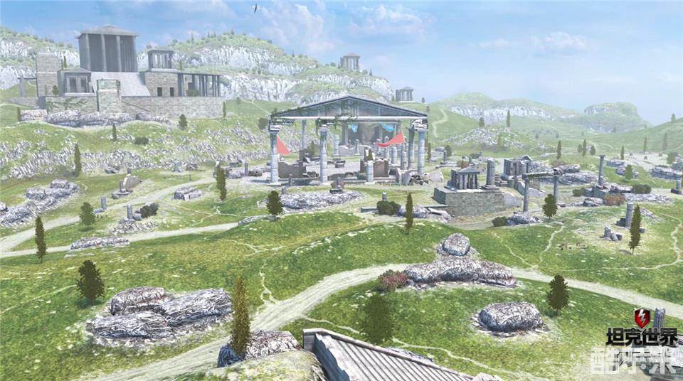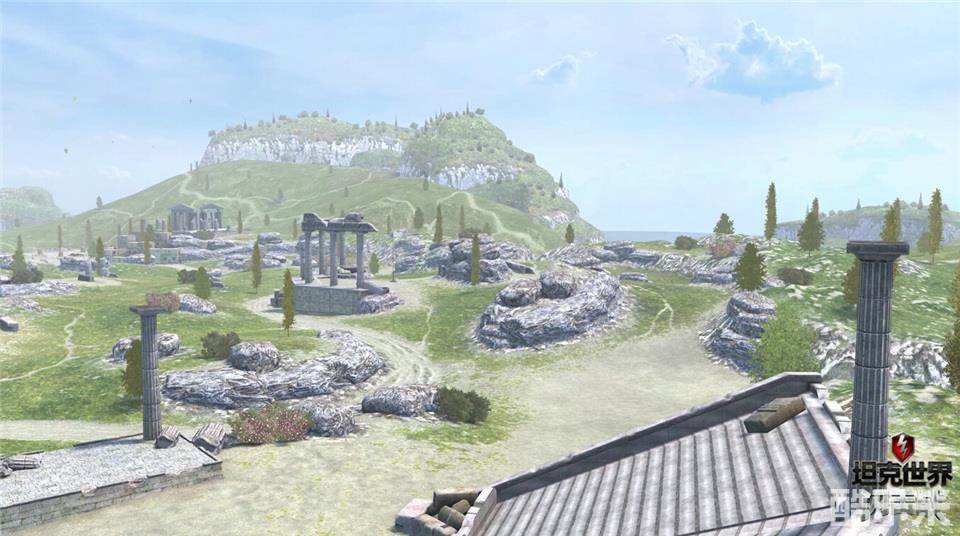 丘陵是海拉斯最显著的特征,崎岖起伏的地形将极大地考验车长们对坦克的控制和射击的把握。地图的最高处耸立着一座古老的神庙,它巨大的石柱能对战车起到绝佳的掩护作用;地图下方有一座露天剧场,这里曾演出过许多著名的戏剧,如今轮到你登台亮相;地图中心,高地与低地轮替出现,并可通过道路通往地图各处,是交战双方的必争之地。