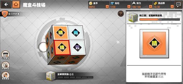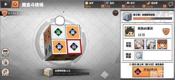 魔盒斗技场就像我们小时候玩的魔方,一共六面,每面四个格子,每个格子固化了一种属性,四个格子的属性不完全相同。
