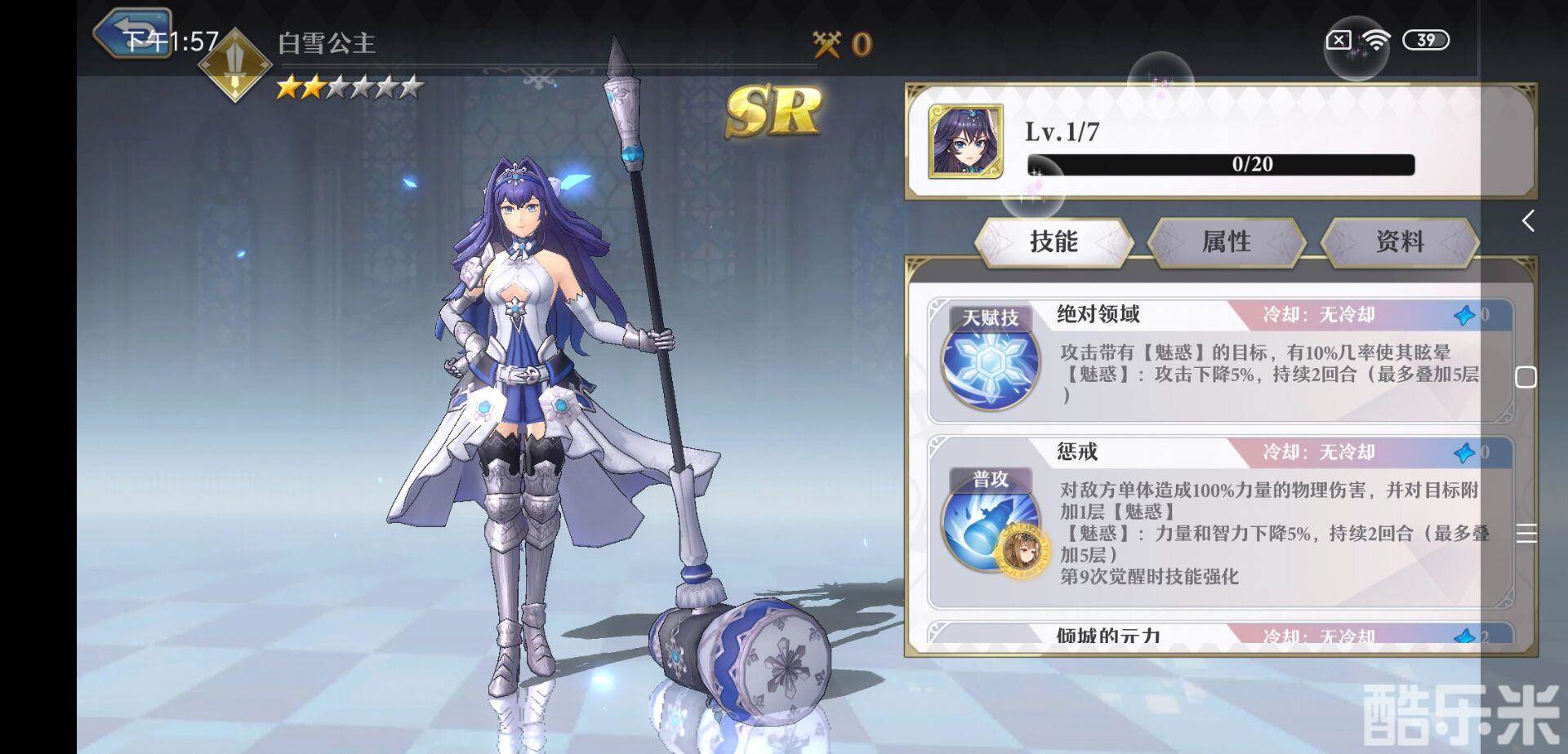 | 奥义技能 | 进击女武神 | 群体攻击,造成140%力量的物理攻击,施加魅惑 |