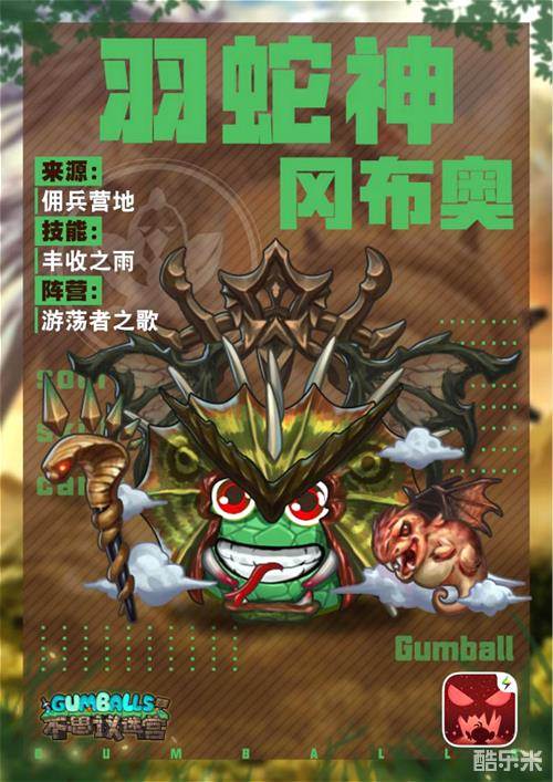 羽蛇神的名字叫库库尔坎,是一条长满羽毛的蛇神,在玛雅神话中是与播种、收获有关的神祗,是一只走到哪儿都风调雨顺、五谷丰登的福神冈布奥!在战斗中可以将获得的痊愈术卷轴转化为丰收之雨,极大地提升魔力!