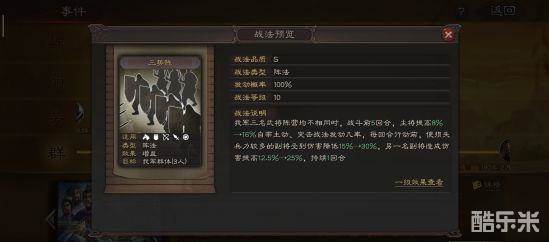 大家好,这里是酷乐米小编龙牧,相信很多玩家都知道《三国志战略版》的新赛季会带来很多惊喜,其实战法也有很多新颖的,下面小编就给大家带来S3赛季全新事件战法介绍,新赛季更新了6个事件战法,一起来看看吧!