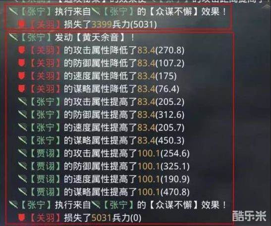 2.张宁自带战法【黄天余音】,吸取敌方单体的几十点四围属性,加给自己和友军单体,发动率100%,能够拉开不小的属性差。