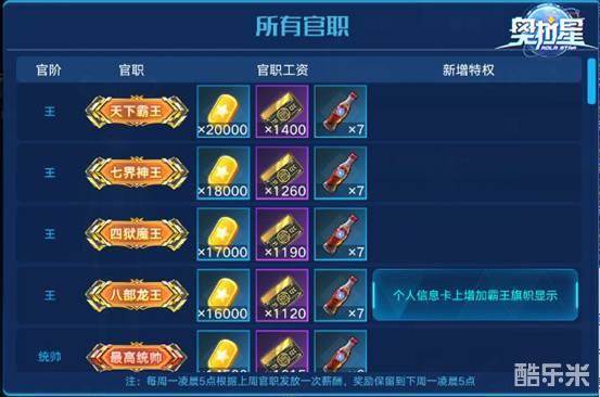 官职系统作为一个全新的功能将在今天同步上线,小奥拉可通过累积功勋解锁官职称号,每解锁一个称号都能获得相对应的奖励,每周系统会按照官职发放官职薪酬。官职等级越高,越能展现小奥拉的实力和贡献,到达一定的官职等级还会有特权奖励。