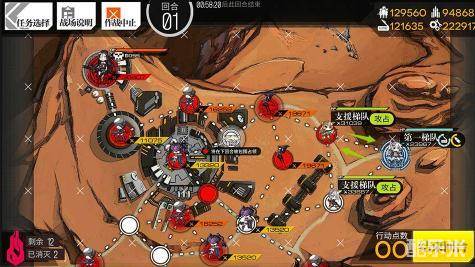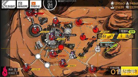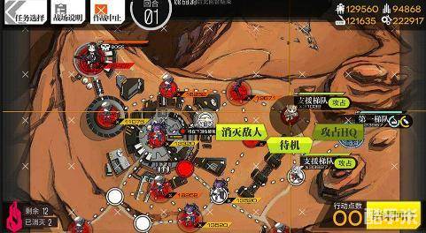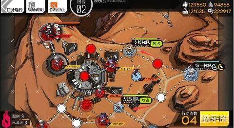 点击回合结束按钮,需要注意的好友梯队的行动顺序是根据你部署顺序来的,所以请一定按照先下后上的部署方法。