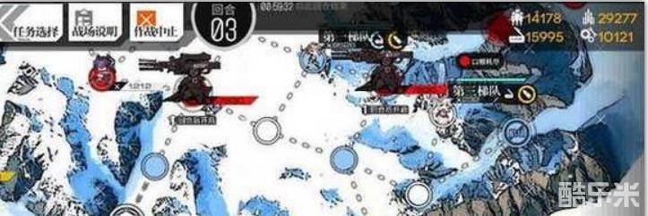 三队先右下移动二格,然后主队消灭炮台,之后左转三格消灭铁血,包围炮台,结束回合,老家两队继续待机,以后都不动了