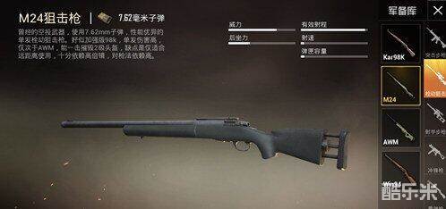 虽然不是空投武器,但刷新率很低,比较难获得。M24的弹道非常的稳,加上高倍镜之后,就是一把杀人利器。