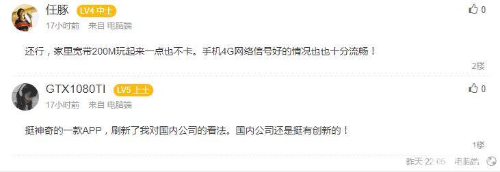 @任豚:还行,家里宽带200M玩起来一点也不卡。手机4G网络信号好的情况也也十分流畅!